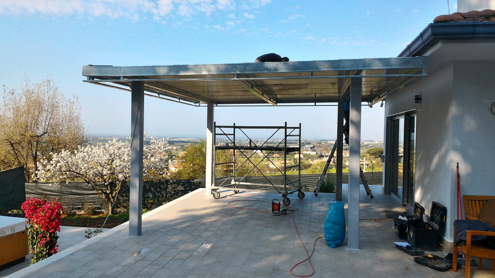 Una struttura concepita con linee semplici ed essenziali che si andasse ad integrare perfettamente con il moderno design dell'abitazione; un living tutto da vivere nella stagione primaverile ed estiva.
